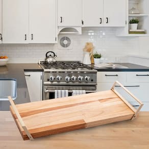 Material de Alta Qualidade; Fabricada com madeira teca de qualidade premium e detalhes em aço inoxidável, esta bandeja é durável, resistente e fácil de limpar.