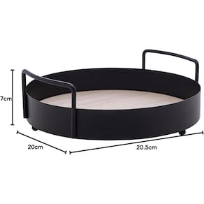 Dê um toque de elegância discreta à sua decoração com a Bandeja Redonda de Metal Lyor. Combinando o charme do metal com a praticidade do MDF em um acabamento preto fosco, esta peça é tanto funcional quanto esteticamente atraente.