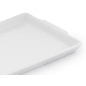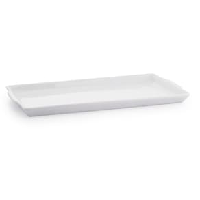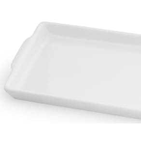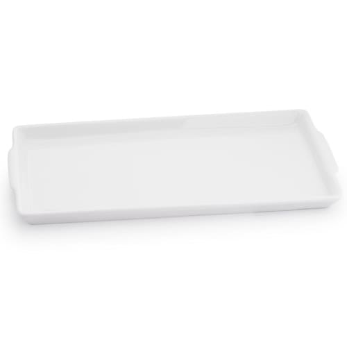 Bandeja de porcelana retangular 19 x 37 cm travessa rasa Bandeja retangular com alças, produzida em porcelana nacional, material que confere resistência e durabilidade, sem perder a elegância da louça branca.