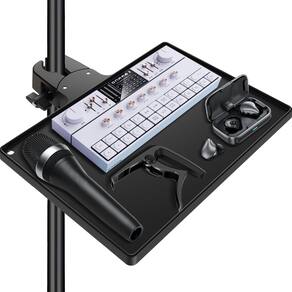 IMPORTANTE: Se for um produto elétrico, ele pode ser compatível com uma tomada de 110 volts. Se utilizado fora dos Estados Unidos, pode ser necessário um conversor de voltagem para garantir a operação adequada. Verifique se o produto que você está comprando é elétrico antes de considerar essas informações. Eleve sua performance musical ou configuração de estúdio com a bandeja de suporte para microfone BILIONE. Este acessório versátil possui uma braçadeira de metal resistente que se conecta com segurança a qualquer suporte de microfone padrão, fornecendo uma prateleira espaçosa de 10,6" x 7,8" para armazenar itens essenciais, como letras, tablets ou até mesmo interfaces de áudio. A bandeja grande oferece amplo espaço, tornando-a uma adição inestimável para shows, eventos de karaokê ou sessões de gravação. Feita pensando na durabilidade, esta bandeja de suporte para microfone foi construída para suportar os rigores do uso frequente. Melhore sua presença no palco e mantenha seu equipamento organizado com a bandeja de suporte para microfone BILIONE. Fechadura de fivela em estilo braçadeira - Diferente da instabilidade e fragilidade da braçadeira de fivela tradicional. A capacidade de carga e adaptabilidade da fechadura tipo Clamp são melhores - O diâmetro da abertura pode ser melhor ajustado e, mesmo com cargas pesadas, a trava de fivela tipo Clamp pode ser segurada firmemente no poste quando fixada. Ampla aplicação — A bandeja de suporte para microfone é perfeita para palcos, escritórios, salas de aula, estúdios de gravação, escritórios, webinars, salas de reuniões ou sua própria casa. Sem necessidade de ferramentas, leva de 1 a 2 minutos para prender a bandeja no suporte do microfone e pode ser usada imediatamente. Existem nervuras de reforço na parte inferior da bandeja que a tornam mais rígida do que se poderia esperar. A braçadeira é acionada por mola para mantê-la aberta, o que realmente ajuda na montagem. O parafuso de ajuste de estanqueidade está “preso”, portanto, não cairá se for aberto demais. A alça do parafuso de fixação é grande e forte o suficiente para o trabalho e a braçadeira é forrada com uma tira de almofada para ajudar a permanecer firme sem marcas no suporte principal. Há uma bela “borda” ao redor do perímetro da prateleira que impede que os itens rolem.