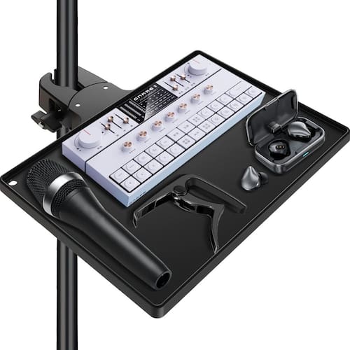 - Portátil e leve: fabricada com materiais leves, esta bandeja é fácil de transportar e configurar para apresentações em qualquer lugar ou sessões de gravação