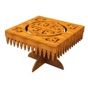 Bandeja Decorada Com Suporte Em Mdf Material MDF CRU 3 mm Formato Aplicado: Conforme a Imagem Formato Montado: 1 peça Comprimento: 13 cm Altura: cm Largura: cm Peso Aprox.: 700 gramas Acabamento: Corte a Laser sem pintura : Desmontada