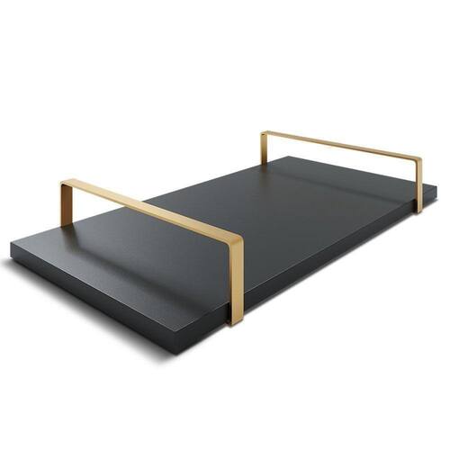 Bandeja Decorativa 25x50cm Borda Infinita Preta Com Alça Cobre
