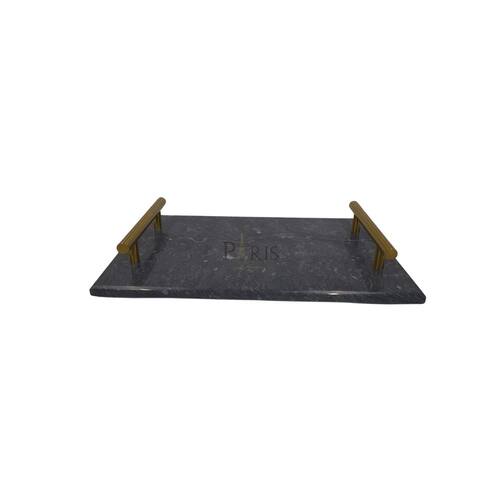 Cód.: RJC0015Bandeja Decorativa de Mármore Preto e DouradoMaterial: Mármore e MetalCor: Preto e DouradoDimensões: 30x20x5cm (CxLxA)