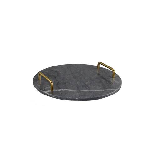 Cód.: RJC0021Bandeja Decorativa de Mármore Preto e DouradoMaterial: Mármore e MetalCor: Preto e DouradoDimensões: Ø30x5cm