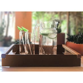 Versátil, resistente e com design funcional, a bandeja metálica linha nexo da morphí design combina elegância com praticidade. Ideal para servir drinks e auxiliar em refeições, pode ser usada ainda como parte da decoração do ambiente. Ela é feita em aço carbono, recebe pintura eletroestática e alça de madeira angelim.