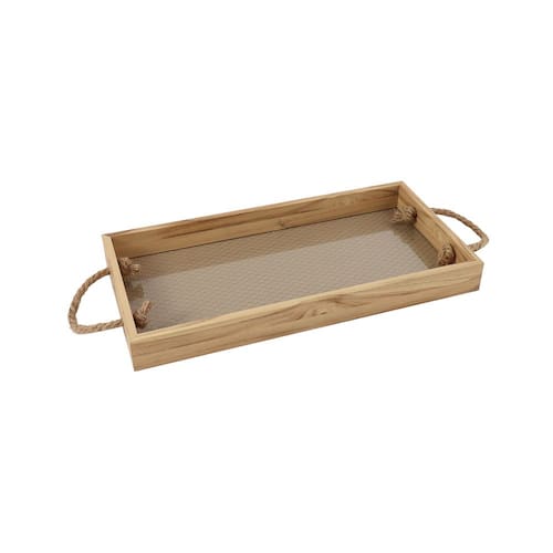 Cód: KV0298 Bandeja Decorativa em Madeira e Couro Sintético Natural Material: Madeira e Couro Sintético Cor: Natural Dimensões: 40x20,5x4cm (CxLxA)