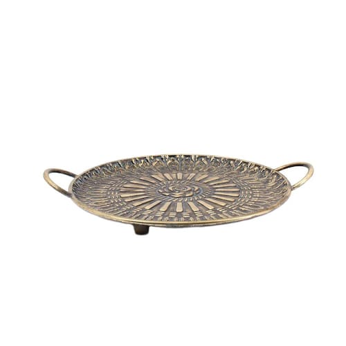 Cód: CR0185 Bandeja Decorativa Redonda em Metal Dourado Material: Metal Cor: Dourado Dimensões: Altura: 8cm Largura: 40cm Profundidade: 50cm