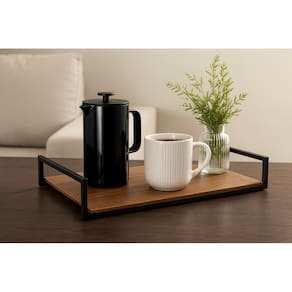 Elegante e funcional, esta bandeja decorativa combina a resistência do aço com a elegância da madeira, tornando-se uma peça versátil para compor diversos ambientes. Com estrutura metálica resistente e acabamento refinado, ela oferece durabilidade sem abrir mão do estilo. A base em madeira valoriza os objetos dispostos sobre ela, criando um visual leve e contemporâneo.