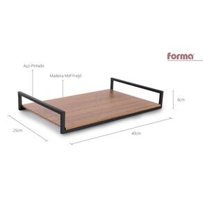 Bandeja Decorativa Linha Frame 40cm Aço e MDF Suporte Para Objetos - Forma Utilidades