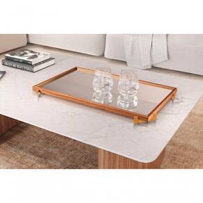 A bandeja Decorativa da Larflex é uma peça diferenciada, possui espelho em sua forma central, que proporciona mais elegância à bandeja. Ela é versátil, pode ser posta para decorar e apoiar objetos sob móveis na sua sala de estar, sala de jantar, quarto etc. Além de agregar na decoração do ambiente, pode ser utilizada para recepcionar seus convidados em seus encontros sociais. Outra dica de uso, já que a bandeja possui uma estética mais formal, é em escritórios, também para servir ou apoiar materiais de trabalho.