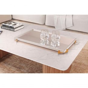 A bandeja Decorativa da Larflex é uma peça diferenciada, possui espelho em sua forma central, que proporciona mais elegância à bandeja. Ela é versátil, pode ser posta para decorar e apoiar objetos sob móveis na sua sala de estar, sala de jantar, quarto etc. Além de agregar na decoração do ambiente, pode ser utilizada para recepcionar seus convidados em seus encontros sociais. Outra dica de uso, já que a bandeja possui uma estética mais formal, é em escritórios, também para servir ou apoiar materiais de trabalho.