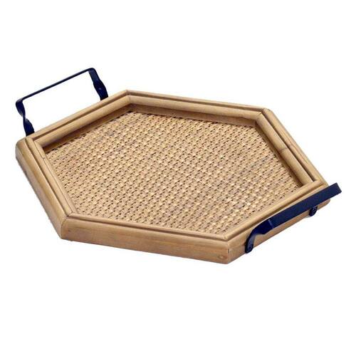 Bandeja Decorativa Hexagonal em Rattan Preto 35cm