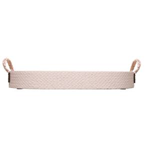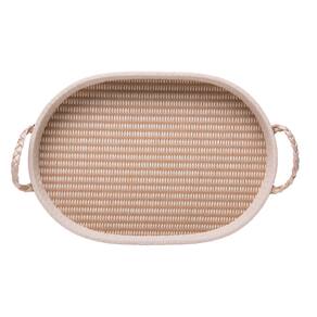 BANDEJA DECORATIVA EM MDF COM ALÇAS - BORDA REVESTIDA EM COURVIN BEGE COM FUNDO FIBRAS TRAMADAS - BASE FORRADA PARA NÃO RISCAR O MÓVEL.