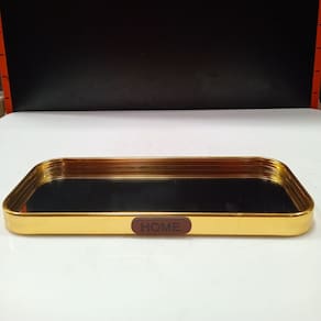 BANDEJA Altura: 1,5 cm Largura: 22,2 cm Profundidade: 9,5 cm Peso: 0,16 Kg Material: Metal Cor: Dourado