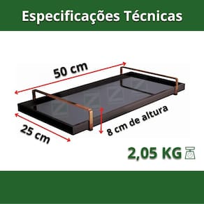 Bandeja Decorativa Preta Espelhada Alça Preta