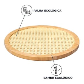 Deixe sua mesa mais atraente e modernaA tábua de bambu com palha e base giratória é uma ótima opção para servir seus alimentos de forma prática e decorar sua casa, a textura da palha e o tom natural do bambu se destacam, deixando a decoração mais charmosa e cheia de graça.Ideal para decorar e organizar ambientes como quartos e cozinha, com a tábua você pode servir comidinhas, colocar temperos na mesa, organizar bijuterias e perfumes no quarto e muito mais.Combina com tudo e cabe em diferentes ambientes, do quarto ao banheiro, da cozinha à salaSua base giratória facilita o acesso aos itens de todos os lados sem dificuldade.Possui antibactericida naturalPrática, fácil de usar e limpar, além de ter um design moderno e minimalista, a tábua é ecológica e 100% sustentável evitando a proliferação de bactérias e fungos.Especificações técnicas:- material : bambu e palha- diâmetro: 30cm- altura: 2,7cmCuidados:- não lavar em lava-louças;- não colocar em microondas;- lavar com detergente neutro e esponja macia;- enxugue após a lavagem;- guardar em lugar seco e arejado.