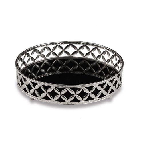 Bandeja Decorativa em Metal Prata com Espelho Preto 5x17,5 cm - D'Rossi