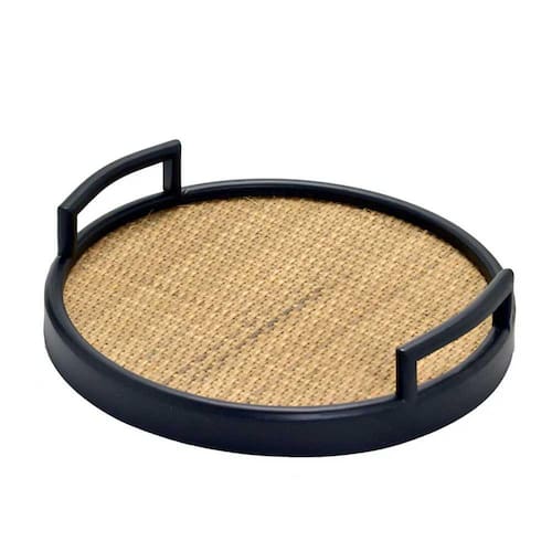 Bandeja Decorativa Rattan Redonda Preta 30cm Espressione