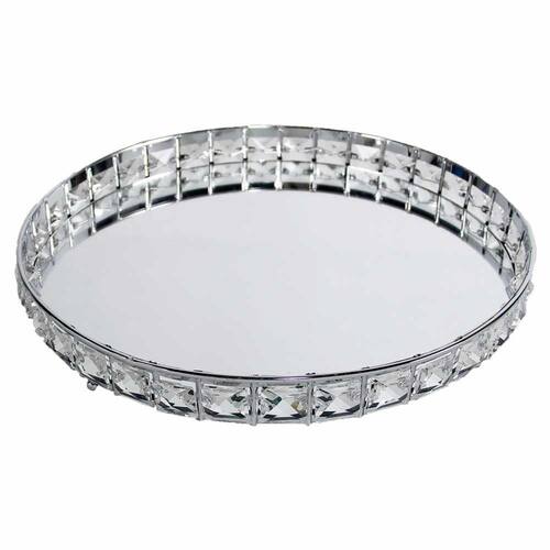 Cód.: KV0254 Bandeja Decorativa Redonda Prata Cristal com Espelho Material: Metal e Vidro Cor: Prata Dimensões: Ø31x4cm