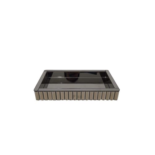 Cód.: 12720-PL Bandeja Decorativa de Vidro Fumê Material: Vidro Cor: Fumê Dimensões: 35x20x5cm (CxLxA)