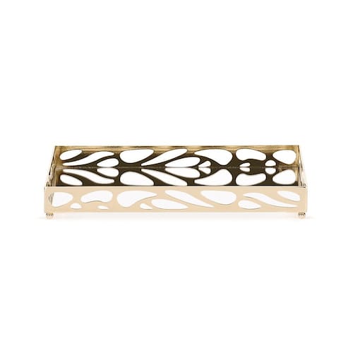 Transforme sua decoração com a elegância desta bandeja em metal dourado com espelho. Com design moderno e detalhes vazados, é perfeita para organizar perfumes, velas, bijuterias e outros objetos, levando charme e sofisticação para qualquer ambiente.
