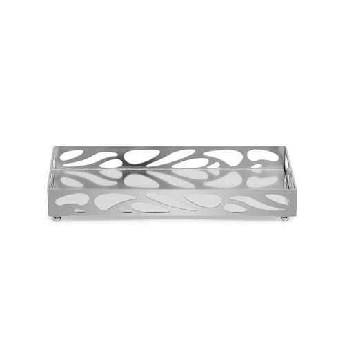 Deixe sua decoração mais elegante e funcional com esta bandeja em metal prata com espelho. Com design moderno e detalhes vazados, é perfeita para organizar perfumes, velas, bijuterias e outros itens, trazendo charme e sofisticação para qualquer ambiente.