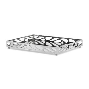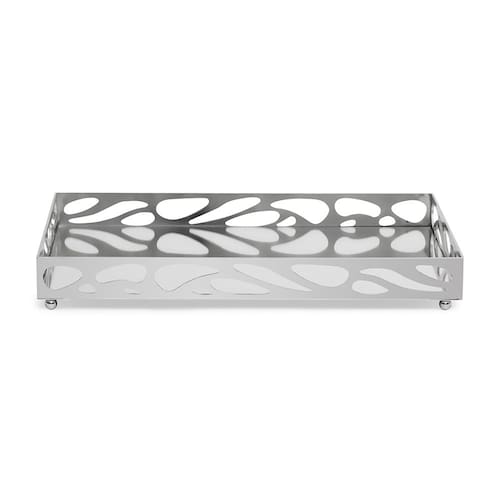 Deixe sua decoração mais elegante e funcional com esta bandeja em metal prata com espelho. Com design moderno e detalhes vazados, é perfeita para organizar perfumes, velas, bijuterias e outros itens, trazendo charme e sofisticação para qualquer ambiente.