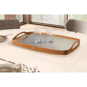 A bandeja Decorativa é uma peça diferenciada,possui espelho em sua forma central, que proporciona mais elegância à bandeja. Ela é versátil, pode ser posta para decorar e apoiar objetos sob móveis na sua sala de estar, sala de jantar, quarto etc. Além de agregar na decoração do ambiente, pode ser utilizada para recepcionar seus convidados em seus encontros sociais.