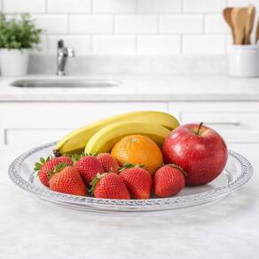Bandeja em Acrílico Transparente Redonda Detalhe Trança 32cm