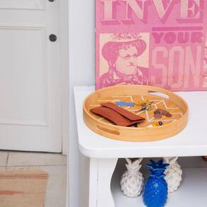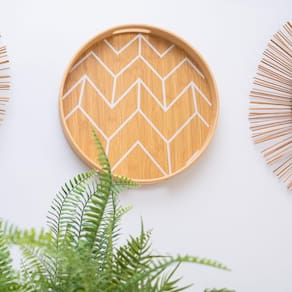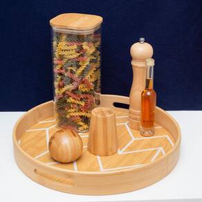 Bandeja Em Bambu Redonda 35Cm OikosA Bandeja em Bambu Redonda da OIKOS pode ser usada tanto para servir comes e bebes, quanto para deixar seus itens organizados.Seu Design decorativo combina com qualquer lugar da casa, até pendurada na parede, essa bandeja se dá bemA mistura do tom natural do bambu com a estampa geométrica dá um toque rústico e, ao mesmo tempo, moderno na decoração. Durável e higiênica, é feita de bambu, um material resistente e com propriedades que evitam a proliferação de bactérias.A Bandeja em Bambu Redonda da OIKOS possui o diâmetro de 35cm.