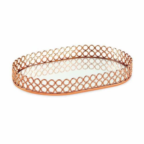 Bandeja Em Metal Com Espelho Cobre 4,5X36Cm