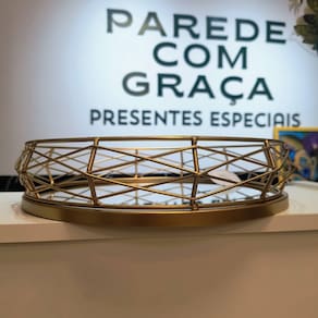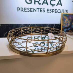 Esta elegante bandeja, com acabamento em metal dourado, é perfeita para adicionar um toque de luxo ao seu espaço. O espelho no centro reflete a sofisticação e dá amplitude ao ambiente. Com um diâmetro de 32 cm e uma altura de 6,5 cm, é ideal para organizar e exibir itens decorativos, perfumes ou servir com estilo em ocasiões especiais.