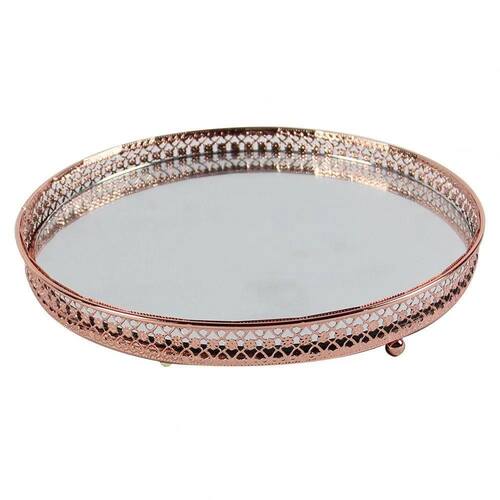 A bandeja cobre tem excelente acabamento, é fabricada em metal com espelho e pode ser usada em vários ambientes, dando requinte e charme para sua decoração.