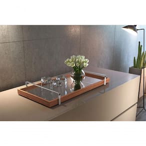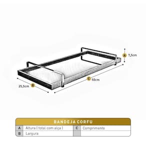 A bandeja pode ser usada como objeto de decoração em salas de estar e jantar, cozinha, como organizadora ou para servir refeições, bebidas ou café. Com design moderno e alça cromada, é indispensável para quem não abre mão da elegância no ambiente e da versatilidade durante os encontros com amigos e familiares.