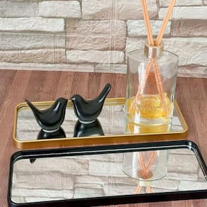 Bandeja Espelhada Decorativa Lavabo Banheiro Sala, Expositor de Joias Multiuso 01 Unidade 30x10cm Cor: Preto Bandeja Decorativa Espelhada 30x10cm com Estrutura em Plástico - Sofisticação e Praticidade para sua Decoração A Bandeja Decorativa Espelhada é uma opção elegante e funcional para compor diversos ambientes da sua casa. Com estrutura em plástico resistente e base espelhada, ela une leveza, praticidade e estilo. Perfeita para organizar perfumes, cosméticos, acessórios ou servir com charme em ocasiões especiais. Disponível nas cores preta ou dourada, se adapta facilmente a diferentes estilos de decoração. Destaques do Produto