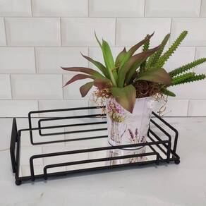 Bandeja Espelhada Decorativa Retangular 30x20cm Preto Fosco Banheiro Aparador Vienna.