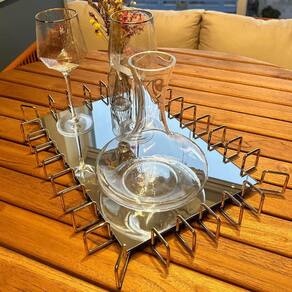 Fabricada em aço de alta qualidade, a bandeja apresenta um acabamento dourado que confere um brilho sutil e sofisticado. A superfície espelhada adiciona um toque de luxo, refletindo a luz e ampliando a sensação de espaço no ambiente. Ideal para ser posicionada sobre aparadores ou mesas de centro, a bandeja pode servir como base para arranjos florais, velas, livros ou objetos de arte, criando um ponto focal no ambiente. Essa bandeja a escolha ideal para quem deseja uma peça funcional e ao mesmo tempo esteticamente agradável. Ela se adapta a uma ampla ampla variedade de estilos decorativos, oferecendo tanto beleza quanto praticidade, sendo perfeita para realçar a decoração de qualquer ambiente. Marca: Não Informado