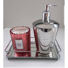 Bandeja espelhada Fence 10 x 20 cm de vidro Hara 1601 Linda bandeja para organizar , sua bancada, seu banheiro Serve como porta aromatizantes, sabonete liquido, muito mais utilidades Produzida em aço cromado, com fundo de vidro espelhado - Foto meramente ilustrativas, não acompanha demais acessórias da foto Ean: 7899283507428