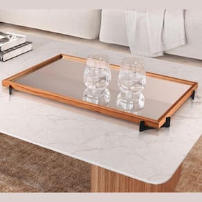 Bandeja Espelhada Gala Cor Castanho Pés Preto Bandeja Espelhada Gala Cor Castanho Pés Preto Esta bela bandeja espelhada Gala na cor castanho, com pés em metal cor Preto, é uma escolha elegante e sofisticada para sua decoração. O espelho reflete a luz do ambiente, criando um efeito de brilho que dá um toque especial à peça. Os pés em metal cor Preto são resistentes e garantem a estabilidade da bandeja. A cor castanho confere um toque clássico e versátil, que combina facilmente com diferentes estilos de decoração. Além de ser usada para servir bebidas e aperitivos, esta bandeja pode ser usada para organizar objetos pessoais ou decorativos em sua casa ou escritório. Feita com materiais de alta qualidade, a bandeja é resistente e durável, garantindo que possa ser usada por muitos anos. Além disso, ela é fácil de limpar e manter. Esta bandeja espelhada Gala é a escolha perfeita para quem busca um item funcional e elegante para sua decoração. Especificações