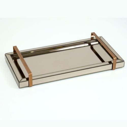 - Estrutura: Espelho bronze e alça em metal na cor cobre;