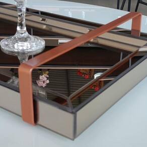 Dê um toque de sofisticação e estilo à sua casa com a Bandeja Espelhada Liz com Alça Cobre. Feita para impressionar, esta bandeja combina o charme do espelho com a sutileza do cobre, adicionando um toque de luxo a qualquer espaço. Seja para servir com classe ou para exibir suas peças favoritas, a Bandeja Espelhada Liz é a escolha perfeita. Não deixe escapar esta peça única de decoração que vai transformar o seu ambiente. Compre agora e eleve o seu espaço para um novo nível de elegância!