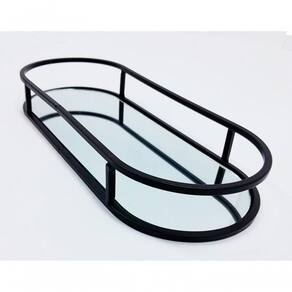 Bandeja Espelhada Oval Metal Preto Lavabo Multiuso 30x12cm