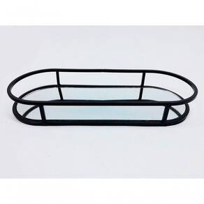 Bandeja Espelhada Oval Metal Preto Lavabo Multiuso 30x12cm -