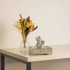 Decore sua casa com requinte, luxo e impressione a todos com esta exclusiva bandeja Prata em metal. Essa peça proporciona organizar dando o design que seu ambiente precisa!