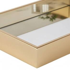 Valorize a decoração da sua casa com esta bandeja decorativa espelhada, que une elegância, funcionalidade e design atemporal. Com estrutura em acabamento dourado e base espelhada, ela é perfeita para organizar e destacar objetos decorativos, perfumes, joias, velas ou acessórios, trazendo um toque de luxo ao ambiente.