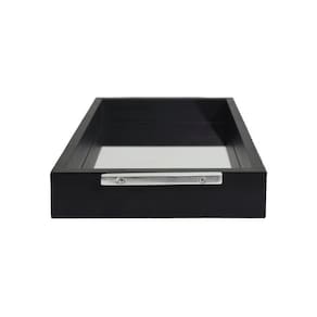 A Bandeja Espelhada Retangular Preta é versátil, pode ser posta para decorar e apoiar objetos sob móveis na sua sala de estar, sala de jantar, quarto etc. Além de agregar na decoração do ambiente. Pode ser utilizada para servir seus convidados em seus encontros sociais. Outra dica de uso, já que a bandeja possui uma estética mais formal, é em escritórios, também para servir ou apoiar materiais de trabalho. Especificações: Marca: Minha Moldura Cor: preta Modelo: espelhada Material: madeira, metal e espelho Medidas: Interna: altura: 3 cm largura: 16 cm comprimento: 28 cm Externa: altura: 4 cm largura: 18 cm comprimento: 30 cm Observação: Imagens meramente ilustrativas Produto ecologicamente correto Ean: 7898657445625