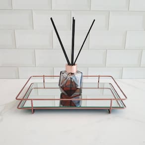 Ideal para decorar pequenos espaços, a bandeja espelhada rose gold dá um toque elegante ao ambiente. Com um espaço de uso de 25x15,5cm e capacidade para até 1kg você poderá dispor sobre a bandeja itens para decorar a bancada do banheiro e lavabo ou até mesmo a penteadeira com alguns perfumes sobre ela. A bandeja decorativa rose gold é prática e de fácil manuseio. Deixe seu ambiente sofisticado e moderno.