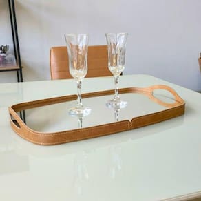 Esta bandeja decorativa espelhada com detalhes em couro preto é a escolha perfeita para quem busca sofisticação e elegância em sua decoração. O espelho reflete a luz do ambiente, criando um efeito de brilho que dá um toque especial ao objeto. Além disso, a bandeja é versátil e pode ser usada para diversos fins, como servir bebidas e aperitivos ou como um item de decoração para objetos pessoais. Com detalhes em couro marrom oferece um toque clássico e elegante, que combina facilmente com diferentes estilos de decoração. Feita com materiais de alta qualidade, a bandeja é resistente e durável, garantindo que possa ser usada por muitos anos. Esta bandeja decorativa espelhada com detalhes em couro marrom é a escolha perfeita para quem busca um item funcional e elegante para sua casa ou escritório.