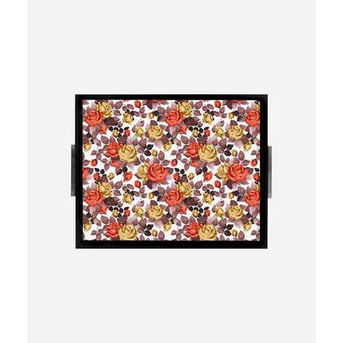 Bandeja Estampada 30x37 - Rosa Dourada Cor: Preta Composição: Madeira, metal, estampa impermeável. Medidas Internas Aproximadas: 2 x 28 x 35 Altura x Largura x Comprimento Medidas Externas Aproximadas: 3 x 30 x 37 Altura x Largura x Comprimento Peso: 503 gramas : Contra defeitos de fabricação. Imagens Meramente Ilustrativas. Produto Ecologicamente correto. Marca: Não Informado